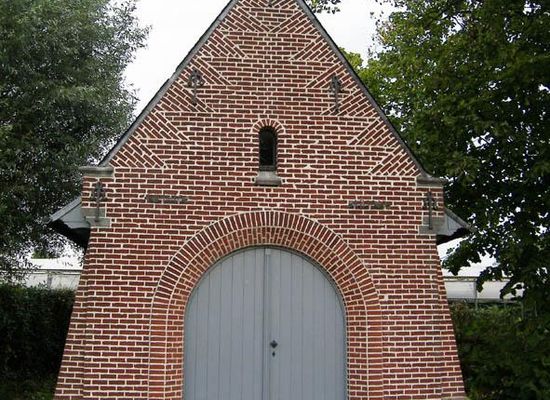 Paanderstraat nr. +131. Kapel van O.-L.-Vrouw Troost in Nood, ook gekend als "Beels kapel", herbouwd in 1949 op de plaats van een begin 19de-eeuws kapelletje. Historiek. In 1810 bouwt Franciscus Beel nabij zijn hoeve een kapel als dank voor de behouden thuiskomst van zijn zoon Petrus uit het Franse leger. De kapel, die op het primitief kadasterplan (ca. 1830) weergegeven wordt, wordt in de loop der tijd meermaals beschadigd en bestolen, doch telkens door de familie Beel hersteld. In 1842 vereert pater Jozef Beel, zoon van Petrus Beel, de kapel met verschillende relikwieën, o.m. van het H. Kruis, het Graf van Maria, H. Barbara, H. Antonius Abt en H. Cornelius. In 1949 laat E.H. Alfons Beel de huidige kapel oprichten na opnieuw een behouden terugkomst van een familielid, ditmaal van priester Remi Beel die tijdens de Tweede Wereldoorlog in Brussel gevangen gehouden wordt. Beschrijving. Goed onderhouden kapel, gelegen aan een bocht van de weg, omgeven door linde, wilg en meidoornhaag; omliggend kasseistoepje. Roodbakstenen kapel met halfronde kooruitbouw onder zadeldak (nok loodrecht op straat; leien) met geschilderde, houten dakoverstek op consoles. Puntgevel met vlechtingen op schouderstukken en uitlopende hoeksteunberen. Natuurstenen plint, kraagstenen, topkruis, afzaten en trede. Sierankers. Rondboogvensters met ruitvormige glas-in-loodinvulling en dito nis in top. In verdiepte nis, rondboogtoegang met geschilderde houten vleugeldeur. Op de straatgevel aangebrachte initialen van bouwheren en bouwjaren "F B 1810" EN "A B 1949". Grotendeels witgeschilderde en gepleisterde binnenafwerking onder tongewelf; wit-zwarte natuurstenen tegelvloer. Koorgedeelte met geschilderde tekst "O.L.VROUW TROOST IN NOOD", afgescheiden door middel van hoog, tweedelig witgeschilderd traliehek. Natuurstenen altaar met tabernakel, waarin O.-L.-Vrouwebeeldje op maan met slang; flankerende gepolychromeerde beelden van H. Rochus, H. Cornelius, H. Barbara en H. Antonius Abt; zittend Mariabeeld gesigneerd "A. ALLOO" met opschrift "KOMT TOT MIJ". Natuurstenen wijwatervat. KADASTERARCHIEF WEST-VLAANDEREN, 207 : Mutatieschetsen, Meulebeke, Afdeling 2, 1948/37. BOUCKHUYT L., De kapellekensbaan, een inventaris van de Meulebeekse veldkapellen, Meulebeke, 1994, p. 85-100, 163. DEGRANDE V., Inventaris van de kapellen in West-Vlaanderen, Gemeente Meulebeke, s.l., s.d., nr. 27. GERMONPREZ R., Het boek van Meulebeke, Meulebeke, 1982, p. 243. Het monument van de Paanders, Beels Kapelle kent een bewogen geschiedenis, in De Weekbode, 17 maart 2000. MUYLAERT F. (red.), Kerken in West-Vlaanderen, Deel 1, Roeselare, 1992, p. 119. Paanderspad, brochure wandelroutes, Meulebeke, 1991, p. 7-11.