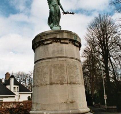 Tijdens de gemeenteraad van 18 juli 1919 kwam het tot de beslissing dat er een vrijheidsboom zou worden geplant en dat er een comité zou worden samengesteld voor de oprichting van het oorlogsgedenkteken voor de Gentbrugse oorlogsslachtoffers van 1914-1918. Op 10 december 1919 besliste de gemeenteraad om hiervoor een lening aan te gaan van 45.000 frank. Ze gingen ook toelagen aanvragen bij het staatsbestuur. Op 3 september 1921 legde men de locatie vast en stelde men dat de gemeente 30.000 frank zou bijdragen. 25.000 frank was voorbehouden voor het monument zelf en 5000 frank voor de organisatie van de wedstrijd in de zoektocht naar de juiste kunstenaar. Op 4 oktober werd het programma en reglement van de wedstrijd goedgekeurd. Tijdens de geheime zitting van 30 januari 1922 kwam het ontwerp van Domien Ingels en Fritz Coppieters naar voor. Het oorlogsmonument zogenaamd "Heldenhulde" werd op 17 september 1922 plechtig en feestelijk ingehuldigd.