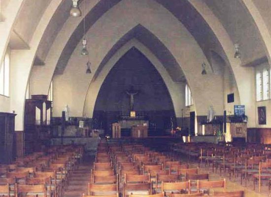 Rijksweg nr. +32. Kerk Sint-Henricus. Parochiekerk gebouwd in 1939 naar ontwerp van architect Willem Nolf (Torhout). Ze wordt in de loop van de Tweede Wereldoorlog in gebruik genomen. Groenaanleg, bas-reliëf Sint-Christoffel en Lourdesgrot rond de kerk (cf. infra, Rijksweg z.nr.). Zaalkerk op rechthoekige plattegrond, ten noorden voorgeplaatst portaal en toren. Geelbakstenen volume onder steil zadeldak (leien). Smallere koortraveeën afgesloten door veelzijdige absis. Ten zuidwesten, bij het schip en koor aansluitende imposante sacristie. Gesloten torenvolume met haaks op elkaar gestelde steunberen. Klokkenverdieping met rechthoekige galmgaten, borstwering, stompe spits met windhaan. Rondboogportaal in een geriemde omlijsting. Puntgevel op het noorden afgewerkt met aandak en vlechtingen, kruisbekroning, gekoppelde rondboogvensters (glas-in-lood). De traveeën van het schip en het koor zijn geritmeerd door versmallende steunberen, gekoppelde rondboogvensters. Interieur: bepleisterde en witgeschilderde zaalkerk met ritmerende gordelbogen. Orgel van Loncke Orgelbouw (Kortemark-Zarren) van 1981. VLAAMS INSTITUUT VOOR HET ONROEREND ERFGOED, Documentatiecentrum, Kaarten en plattegronden K.C.M.L.. FAUCONNIER A., ROOSE P., Het Historisch Orgel in Vlaanderen, Deel IV a Provincie West-Vlaanderen (Arrondissementen Brugge en Oostende), Brussel, Bestuur voor Monumenten & Landschappen, 1986, p. 409. MESTDAGH M., De kerken van Sint-Pietersbanden, Sint-Henricus, Don Bosco, Sint-Jozef Wijnendale, de Goede Herder en Maria Assumpta in Torhout, in Kerken in West-Vlaanderen, deel 1, decanaten Izegem-Lichtervelde-Roeselare-Staden-Tielt-Torhout, Roeselare, 1991-1992, p. 138-139. MESTDAGH M., Torhout. De geschiedenis van een stad, Torhout, 2000, p. 201.