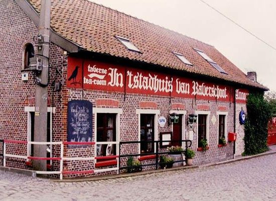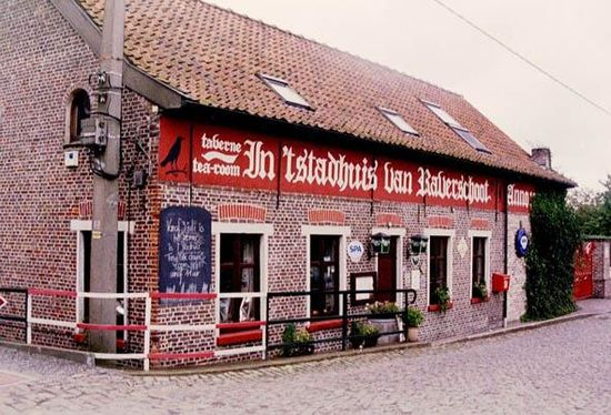 Zogenaamd "In 't Stadhuis van Raverschoot". Café aan de brug over het Schipdonkkanaal, geopend in 1873, op de Poppkaart nog onbebouwd en gelegen op grondgebied Eeklo, in de tweede helft van de 20ste eeuw bij Adegem gevoegd. Oorspronkelijk vijf, thans zes traveeën breed en één bouwlaag hoog, afgedekt door pannen zadeldak. Verankerde bakstenen gevel met rechthoekige, aangepaste muuropeningen. Binnenin totaal vernieuwd. NOTTEBOOM H., Heemkundige wandeling door Adegem (13), Raverschoot, in Heemkundige Bijdragen uit het Meetjesland, I, 1987, 1, p. 6-19.