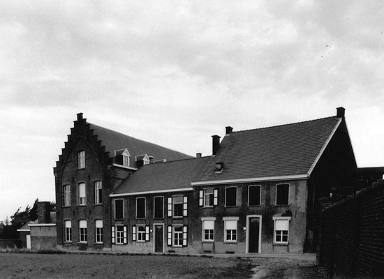 Klooster en voormalige school van de Zusters Onze-Lieve-Vrouw Visitatie. Gelegen ten westen naast de parochiekerk. Gebouwen met L-vormige opstelling, volgens documenten in het klooster opgericht in 1897; nieuwe vleugel, vermoedelijk de nog bestaande neogotische vleugel, van 1902. School opgeheven in 1983. Aan de straatkant afgesloten door bakstenen muur voorzien van drie rondboognissen met reliëfs met staties van de kruisweg, daterend van 1902.