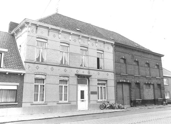 Burgerhuis van vier traveeën en twee bouwlagen onder schilddak (nok parallel aan de straat, Vlaamse pannen), uit de eerste helft van de 19de eeuw. Arduinen plint. Later parement van gele baksteen met grijze muurbanden. Licht getoogde vensters met arduinen lekdrempels op de benedenverdieping, doorgetrokken tot een kordonband op de bovenverdieping. Rechthoekige deur in arduinen omlijsting met geprofileerd beloop en gestrekte waterlijst. Gevel beëindigd met getande kroonlijst op consoles. Rechts ernaast, onder hetzelfde schilddak en van gelijkwaardig volume: pakhuis in decoratieve baksteenbouw.