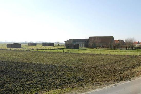 Hoeve met merkwaardige bakstenen bunkers uit de Tweede Wereldoorlog in een weide ten zuiden ervan. Hoeve ongeveer met de huidige opstelling en omwalling (nu verdwenen) reeds aangeduid op de Vander Maelenkaart (circa 1845). Huidige losse bestanddelen van donkere baksteenbouw onder zadel- en schilddaken dateren uit de tweede helft van de 19de eeuw. Deze site maakt deel uit van het grote geheel van Oud Fort Isabella en het Hazegrasfort, beschermd als monument bij ministerieel besluit van 15/10/2003. Voor een beschrijving van de site: zie Knokke Oude Woonkernen, Retranchementstraat.