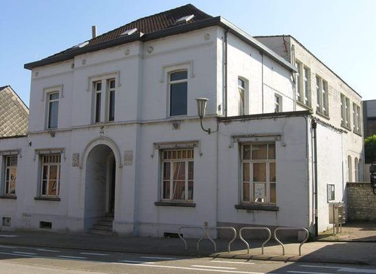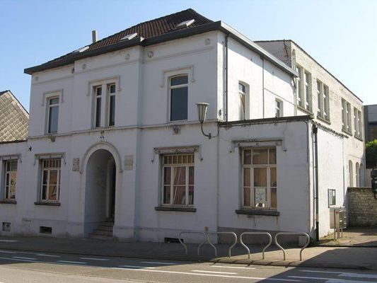 Het complex bestaat uit een neoclassicistisch voorgebouw aan de straat, eertijds gemeentehuis en onderwijzerswoning en een tegen de zuidelijke achtergevel haaks aansluitende schoolvleugel met geplaveide speelplaats ten westen. Het ensemble werd gebouwd naar een ontwerp van 1860 van Louis Spaak, maar naderhand uitgebreid.