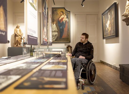 Toegankelijke tuin (bij droog weer). Binnen beperkt toegankelijk. Het onthaalpersoneel bekijkt graag samen met jou de opties.