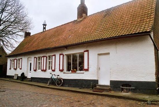 Cannaertstraat nr. 17. Historische hoeve z.g. "Kapelhoeve". Naam verwijst naar de aan de erfoprit gelegen O.-L.-V. van Troostkapel. 18de-eeuwse hoeve, aangegeven op Ferrariskaart (1770-1778) en de Atlas der Buurtwegen (1830). Losse bestanddelen U-vormig gegroepeerd rondom een gekasseid erf. Ten noordwesten boerenhuis, ten oosten schuur en ten noordoosten stalvleugel. Langgestrekt boerenhuis van 1830 met witgeschilderd bakstenen parement op gepikte plint. Pannen zadeldak met dakruiter. Opvallende bergschuur van 1730 cf. balk. VAN HOENACKER E., DECALUWÉ C., Kortrijk, in Landelijk leven en hoevegids Groot Kortrijk, deel 3, Tielt, 1988, p. 65.