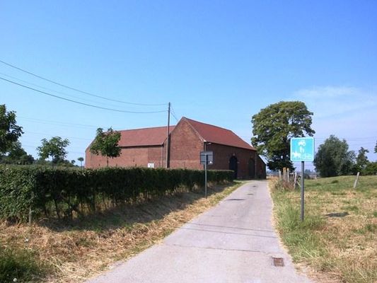 Belangrijke, gesloten hoeve, reeds als dusdanig aangeduid op de Ferrariskaart (1771-1777). Van deze oude kern rest alleen het woonhuis. Van 1852 tot 1855 werd de hoeve grondig aangepast: het woonhuis kreeg zijn huidige ordonnantie, de huidige stallen en het poortgebouw werden gebouwd, en de schuur behield van de oude kern alleen de inplanting. Bakstenen gebouwen onder zadeldaken (Vlaamse pannen alleen op het woonhuis), gegroepeerd rondom een rechthoekig erf, bereikbaar via het poortgebouw aan de noordwestelijke zijde, met dubbele inrijpoort; bakstenen korfboogpoorten met hardstenen imposten en sluitsteen. Dit poortgebouw werd in twee fasen opgetrokken: de linker poort is op de gevelsteen gedateerd 1854, de rechter I:M:B/ 1855; aan erfzijde is de bouwnaad duidelijk te onderscheiden. Het woonhuis met aansluitende stal, aan de westelijke zijde van het erf, behield zijn volume uit de tweede helft van de 18de eeuw, met vrij steil, gebogen zadeldak, zijgevels met aandak en muurvlechtingen, en kwartronde, mergelstenen kroonlijst. De neoclassicistische ordonnantie aan erfzijde dateert uit midden 19de eeuw: rechthoekige vensters, voorheen beluikt, met hardstenen lateien en lekdrempels, en een rechthoekige deur in een hardstenen omlijsting met neuten en geprofileerde druiplijst (oorspronkelijk houtwerk met bovenlicht). Voorts een klein, houten kozijn met diefijzers en twee recentere vensters. De oorspronkelijke staldeur bleef bewaard: getoogd in een rechthoekige kalkstenen omlijsting met sluitsteen. De achtergevel behield de oorspronkelijke deur, getoogd in een rechthoekige kalkstenen omlijsting met sluitsteen en thans verwijderde tussendorpel (circa 1760-1770). Voorts een klein houten luik en een aantal recentere vensters. De voormalige stal, aan de oostelijke zijde van het erf, eveneens daterend van midden 19de eeuw, werd grondig verbouwd, en de gevel gaat schuil achter golfplaten. Dwarsschuur achteraan het erf. Ruim gebouw, voorzien van een bakstenen korfboogpoort, met hardstenen sluitsteen en imposten. De sluitsteen is voorzien van het opschrift: 16/ 1852. Een aantal recentere muuropeningen, onder meer met hergebruik van ouder materiaal.