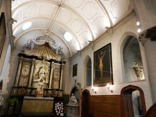 De neogotische beuken van 1860 verbinden de twee uiterste delen van de voormalige kerk. Aan de westzijde een stevige toren van zandsteen, opgetrokken in gotische stijl op een vierkant grondplan (begin 14de eeuw); begane grond overkluisd met kruisribgewelven, en uitkomend op de beuk door middel van een spitsboog; latere torenspits en portaal uit de 19de eeuw. Aan de oostzijde zandstenen koor met vlakke sluiting, binnenin volledig gewijzigd en grotendeels verborgen aan de buitenzijde (vermoedelijk gelijktijdig met de toren opgetrokken).
