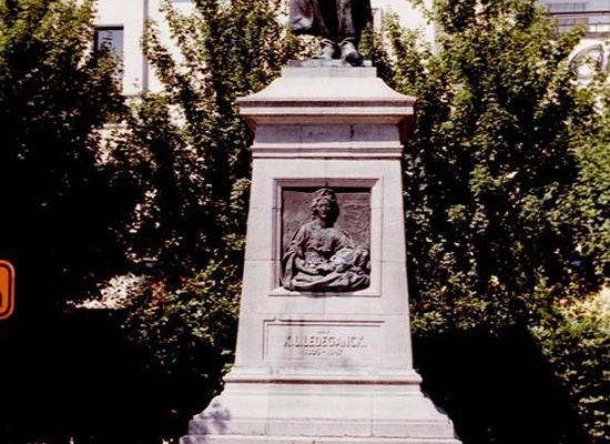 Standbeeld van K. L. Ledeganck. Initiatief tot de oprichting van een standbeeld voor de Vlaamsgezinde dichter Karel Lodewijk Ledeganck (1805-1847) kwam er eerst van de Antwerpse vereniging "Vlaamsche Wacht" in 1889. Pas in 1894 richten vier gemeenteraadsleden uit Eeklo een "Ledeganckcomité" op met als doel een standbeeld op te richten binnen de stad. Via een wedstrijd werd de uitvoering begin 1896 toegewezen aan beeldhouwer Jules Lagae uit Roeselare en goedgekeurd door de Koninklijke Commissie voor Monumenten. Voor de sokkel deed de kunstenaar beroep op architect Henri Vaerwyck uit Gent. De plechtige inhuldiging had plaats op 27 augustus 1897 in aanwezigheid van talrijke prominenten en met uitvoering van de speciaal voor de gelegenheid door Peter Benoit gecomponeerde cantate.