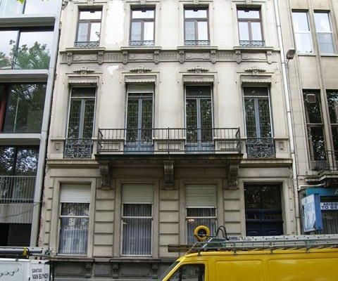 Deze neoclassicistische herenwoning werd rond 1871 gebouwd voor rekening van architect Louis Durieux. Deze Antwerpse architect, op dat moment gevestigd in de Belgiëlei 90, was actief in de jaren 1860 en 1870 met de bouw van heren- en burgerhuizen. Deze grote, statige woning bouwde hij mogelijk voor zichzelf als architectenwoning, op de toen net geopende bouwgronden op het tracé van de gesloopte Spaanse vesten. Langs deze leien kwam de Antwerpse handelsburgerij zich vestigen, onder wie Durieux wellicht hoopte klanten te vinden. Zijn woning vertoont de kenmerken van de herenwoningen die in die tijd langs de leien werden gebouwd, zowel qua omvang als qua stijl en afwerking.