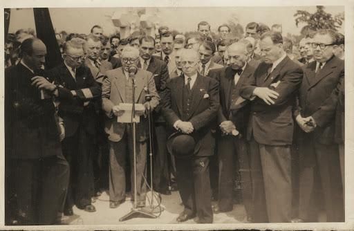 In 1961 rijdt Karel Van Wijnendaele voor de laatste keer mee in de volgkaravaan van de Ronde van Frankrijk. Van Wijnendaele moet de Ronde noodgedwongen vervroegd verlaten, hij keert ziek terug naar huis. Later dat jaar, op 20 december, overlijdt de 79-jarige duizendpoot. Op de foto zie je de begrafenis van Karel Van Wijnendaele. Samen met Cyriel Van Hauwaert (met strik) injecteerde hij Vlaanderen met het wielervirus. Foto: Collectie WieMu Roeselare.