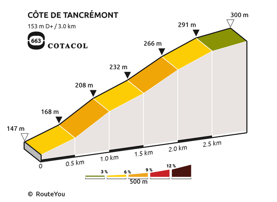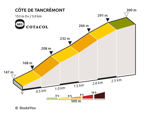 • Gemiddelde hellingsgraad : 4 m / 100 m - 4.37 %