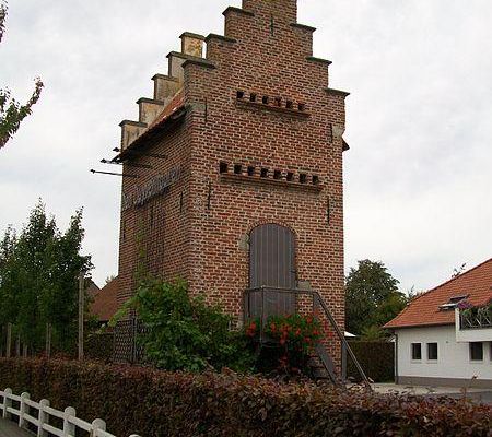 Op deze plaats lag een omgrachte hoeve, die al in de 16e eeuw werd vermeld. De duiventoren staat op het erf van de hoeve, die echter geheel vernieuwd is. Van de omgrachting is nog een deel bewaard gebleven.