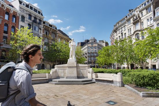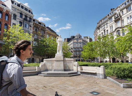 Wandel via de driehoekige square tot aan het verfijnde monument voor de gesneuvelde foorreizigers van de beide wereldoorlogen. De locatie verwijst naar de Zuidfoor die jaarlijks op de Kleine Ring plaatsvindt. Aan de overkant stond vroeger de tweede stadsomwalling van Brussel (14de eeuw), die in de jaren 1820 verdween voor wandelboulevards. Vandaag ijveren wijkcomités om van de openluchtparking op de brede middenberm van de Ring opnieuw een aangename promenade te maken. Het zou Kuregem meteen ook beter met het centrum verbinden. De Luchtvaartsquare is alvast helemaal autovrij gemaakt.
