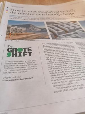 Orbix Solutions is een pionier in het gigantisch reduceren van de CO2 uitstoot in de bouwindustrie. Wereldwijd is de cementindustrie verantwoordelijkheid voor 7% van de CO2 uitstoot. Hier maken ze bouwblokken op basis van metaalslakken (resten van metaalwinning uit ertsen). Daarbij wordt ook nog eens CO2 in de stenen opgeslagen. Per gewicht steen wordt zo een 10% CO2 permenent opgeslagen. En bij het maken van deze stenen wordt, on tegenstelling van klassiek cement, ook nog eens heel weinig CO2 geproduceerd. Er wordt een proces uit de natuur nagebootst, namelijk de productie van marmer. Het proces werd uitgewerkt door VITO.