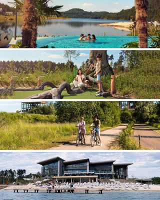 Het Terhills Resort ligt vlakbij de stad Maasmechelen, net over de grens in België. Het ligt dus vlakbij de rivier de Maas, de Nederlandse stad Maastricht en op 40 kilometer rijden van de Belgische stad Hasselt. Het Center Parcs Terhills Resort ligt in een uniek en waterrijk landschap en de cottages staan pal aan het water. Daarnaast ligt het Nationaal Park Hoge Kempen om de hoek zodat je fraaie wandel- en fietsroutes kunt volgen in de natuur. Deze natuurlijke omgeving is geliefd bij gezinnen en natuurliefhebbers en het gebied is het hele jaar een heerlijke plek om te vertoeven.