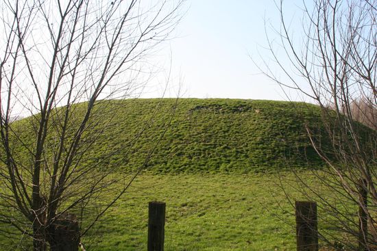 De Hoge Andjoen is echter niet altijd zo hoog geweest. Basiel Slembrouck, de gemeentesecretaris van Werken in de vijftiger jaren van de vorige eeuw schreef een heemkundige studie over Werken die terecht wordt gewaardeerd voor haar degelijkheid. Hij stelt daarin dat de Morinen die hier ooit leefden, hoogst waarschijnlijk op deze plaats reeds een soort van heuveltje aangelegd hadden voor hun (natuur-) godenverering. Sommige onderzoekers veronderstellen dat ze hier ook hun doden verbrandden. Volgens Basiel Slembrouck echter legden ze de lijken gewoon in het water op de plaats waar de Kolvebeek in de Handzamevaart stroomt, vlakbij de Hoge Andjoen dus. Wél goed bewijsbaar dankzij de vele opgravingen die op de Hoge Andjoen zijn gebeurd, is het feit dat er sporen van ijzererts-bewerking werden gevonden in de onderste lagen van de Hoge Andjoen. In die tijd werd er in onze streken ijzererts gevonden dat met behulp van houtskool kon worden gesmolten. En de sporen van die activiteit dateren uit de Romeinse tijd: heel wat ouder dus dan de veronderstelling dat de motten allen dateren uit de middeleeuwen.