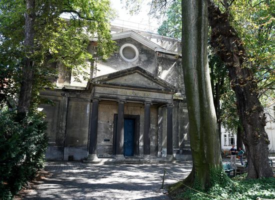 Op het gebouw staan in het groot de letters ‘BEWAREN’, maar die werden er pas later opgezet. De bordjes aan de muur zijn een eerbetoon aan twee leden van de Club der XII, een genootschap dat vanaf 1871 zestig jaar lang lezingen over kunst organiseerde.