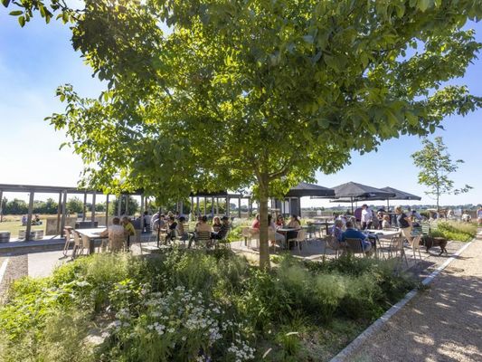 De Poelbergsite... Een knap stukje natuur in combinatie met een rijk cultuurhistorisch verleden! Hier geniet je van een uitgebreide brasseriekaart, en gerechten die met streekproducten worden bereid. Binnen werd het interieur gezellig ingericht, met een knipoog naar het verleden. Maar bij mooi weer, is buiten the place to be. Gezellig vertoeven op het ruime terras terwijl je geniet van een prachtig uitzicht vanop de Poelberg. Kinderen kunnen ravotten in de speelweide met speeltoestellen. Daarnaast werden er ook op de site enkele prachtige picknickbanken geïnstalleerd. De ideale tussenstop tijdens je fiets- of wandelroute!