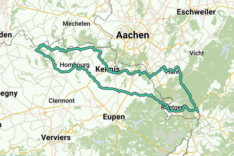 S.M.V. – Crindael – De Plank – Teuven – Beusdael – Sippenaeken – Gemmenich – Moresnet-Chapelle – Kelmis – Hergenrath – Hauset – Eynatterheide – Nütheim – Walheim – Hahn – Venwegen – Mulartshütte – Romerich – Richting Lammersdorf - Waldsiedlung – Vennbahn – Petergensfeld – Neudorf – Belven – Walhorn – Lontzen – Busch – Montzen – Hombourg – Merckhof – Hagelstein – Veurs - S.M.V.