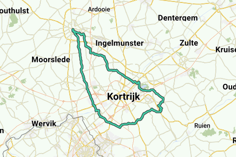 Vanuit Roeselare, een mooie route rond Kortrijk. Het parcours is licht geaccidenteerd met Bellegemberg als lastigste helling.