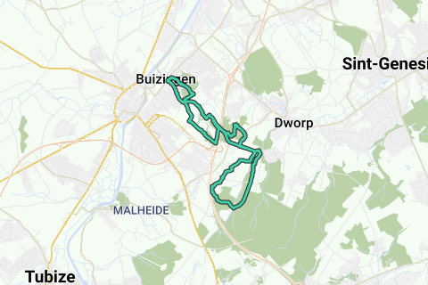 Vertrek aan de kerk van Buizingen (veel parkeerplaats).
