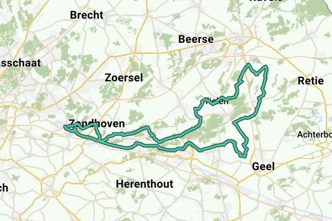Van Kerkhoflei 2, 2520 Oelegem, België-Grobbendonk-Herentals-Mosselgoren-Rauwelkoven-Tenaard-Lichtaart-Kasterlee-Groot Rees-Zevendonk-Lage Rielen-Hoge Rielen-Tielen-Herentals-Vorselaar-Pulle-Vierseldijk-Zandhoven-Oelegem