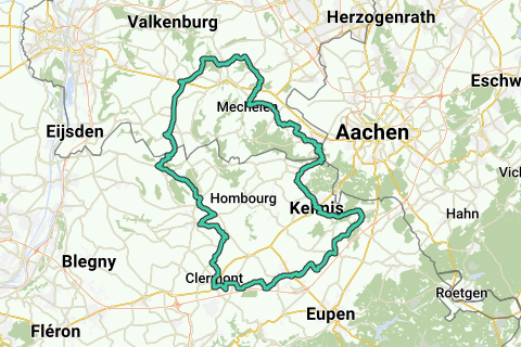 S.M.V. – S.P.V. – ∆ Magis – Hagelstein – Merckhof – rechts slachthuis – links ∆ La Clouse – Crawhez – Clermont ∆ – Lohirville – Hoof – Welkenraedt – centrum – links naar grote weg – stoplicht links (21) – onder spoorwegbrug door, 1ste weg links, links naar Lontzen – (22) rechts naar Rabotrath, links Walhorn – Astenet – rechts (26) – (19) – (18) – Hauset – links naar Hergenrath – ∆ Kelmis – Moresnet-Chapelle – Gemmenich – ∆ 3 landenpunt – Vaals – richting Vaalsbroek – 1ste weg rechts (93) Holset – (90) Harles ∆ – Vijlen – Hilleshagen – Mechelen – ▲(Kruisberg) Wahlwiller – Eys ▲ (Eyserbosweg) – Wijlre ▲(Dodeman) – Ingber - Margraten – Reijmerstok - Hoogcruts – De Plank – Ulvend – S.M.V.