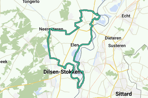 Start aan hotel De Sjeiven Dörpel Leeuwerikstraat 75, 3680 Maaseik, België richting knpt 25 en zo naar Maaseik. Te Rotem de Maas over en die volgend naar Berg aan de Maas alwaar we weer oversteken. Richting Dilsen-Stokkem en Neeroeteren. Terug naar startpunt te Aldeneik
