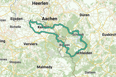 Teuven – ∆ Sippenaeken – Terhagen – Plombières – Moresnet-Chapelle – Kelmis – Hergenrath – Hauset – Eynatten – Lichtenbusch – Oberforstbach – Eich – Kornelimünster – Breinig – Zweifall ∆ – Vossenack – ∆ Schmidt ∆ – Scheidbaum – Hasenfeld – Wolfgarten – Gemünd – Hohenfried – Herhahn – Dreiborn – Berescheid – L207 – B268 Monschauerstrasse – Rothe Kreuz – Rohren – Widau – ▲Grünentalstrase – Imgenbroch – Konzen – Entenpfühl – Petergensfeld – Neudorf – Belven – Walhorn – ∆ Lontzen – ∆ Busch – Ruyff – ∆ Henri-Chapelle – Merkhof – Mabroek ∆ – Remersdaal – Teuven.
