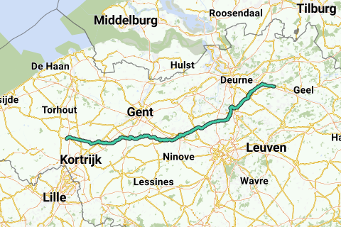 Je rijdt langs de vaart Roeselare-Leie naar Ooigem waar je de vaart oversteekt en de Leievallei volgt tot in St.-Baafsvijve. In St.-Elooisvijve rijd je over de Leie, rond Waregem naar Kruishouten. In Zulte rijdt je Oost-Vlaanderen binnen en wordt het parcours meer golvend. In Gavere rijd je over de Schelde en fiets je door het noorden van de Vlaamse Ardennen richting Aalst, waar je over de Dender rijdt. Even voorbij Aalst, halfweg de rit wordt het parkoers weer vlak en volg je een fiefspad.