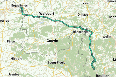 We vertrekken vanuit Beaumont en slingeren ons een weg naar 'la Petite Ferme - rue de la Coue 7 in Alle sur Semois