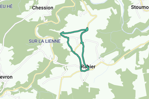 U vertrekt in Rahier, steekt door landelijke velden het gehucht Rouge Thier door. Via het dorpje Meuville weer terug naar Rahier.