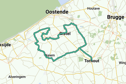 Je start deze fietstocht van zo’n 86 kilometer langs de of Pagus Flandrensis of Vlaanderengouw, een gebied rond Brugge ingedeeld door de Romeinen, aan de Burg in wijk De Goede Herder in Torhout. Via de knooppunten rijd je naar Provinciedomein d’Aertrycke, een prachtig kasteelpark met een vijver, weides en bossen. Bij een kasteelpark hoort natuurlijk een kasteel. Het 19de-eeuwse kasteel d’Aertrycke is, met zijn eclectische neo-gotische stijl, een echte blikvanger. Op enkele kilometers van de Torhoutse binnenstad vind je Kasteel Wijnendale, omringd door het Wijnendalebos. Het kasteel kan je jammer genoeg niet betreden, maar het 180 hectare grote bos is deels toegankelijk voor bezoekers. Vervolgens fiets je door Ichtegem naar Oudenburg waar je de hoeve van de Sint-Pietersabdij kan bewonderen. In de hoeve werden door de monniken groenten, kruiden en dieren gekweekt, brood gebakken en bier gebrouwen. Nu kan je er genieten van het uitzicht en een iets eten en drinken.