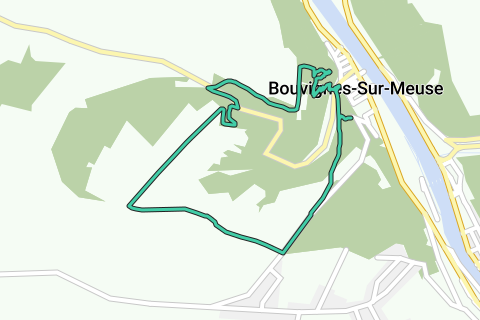 Lusvormige wandeling met start- en eindpunt in Bouvignes, nu een deelgemeente van Dinant, maar vroeger (tot midden 16de eeuw) een bloeiend middelpunt van de kopernijverheid (dinanderie). Uit dit rijke verleden zijn nog een aantal mooie historische gebouwen bewaard gebleven: de Sint-Lambrechtskerk (Maaslandse gotiek uit 13de en 14de eeuw), het Spaanse Huis (voormalig stadhuis van Bouvignes uit 16de eeuw - nu 2 musea rijk: Museum van de Verlichting en Museum van plaatselijke ambachten). De Maasvallei in de buurt wordt gedomineerd door de ruïnes van het kasteel van Crèvecoeur (11de eeuws van oorsprong, vernield door de Fransen in 1554).
