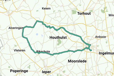 Roeselare, Hooglede, Zarren, Klerken, Diksmuide, Alveringem, Lo-Reninge, Bikschote, Westrozebeke, Roeselare.
