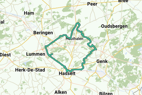 Start Domein Bovy, Kasteel Brouwerij Ter Dolen, De Plas, Kelchterhoef, Hengelhoef, Tenhaagdoornheide, Bokrijk, Kapermolen, Hasselt kanaalkom, Bolderberg 63 km