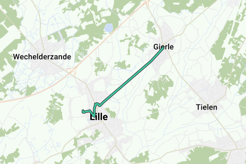 Je volgt het fietspad naast de Gierlebaan tot in Lille. Tegenover het jeugdhuis Frontaal sla je rechtsaf de Kapelstraat in. Je rijdt langs de trage weggetjes tot aan de Wechelsebaan, die je oversteekt aan het zebrapad en vervolgt je weg via de Kabienstraat, Boskant en Veldstraat tot de sportsite.