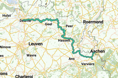 De volledige route van Antwerpen naar het Drielandenpunt. We volgen zo veel als mogelijk onverharde wegen en houden rekening met de bereikbaarheid door het openbaar vervoer en bezienswaardigheden in de omgeving.