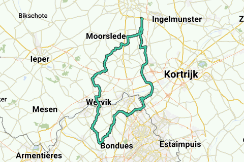 Oekene, Beitem, Slyps, Geluveld, Kruiseke, Wervik, Lincelles, Roncq, Rekkem, Lauwe, Wevelgem, Moorsele, Oekene.