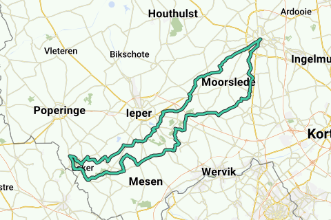Route Zuidwest: Roeselare - Passendale - Zonnebeke - Kemmel - Loker - Rode Berg - Dranouter - Monteberg - Kemmel - Beselare - Moorslede - Beitem - Roeselare