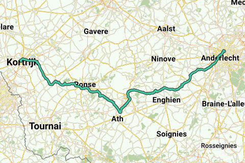 Van Helihavenlaan, Brussel, 1000, België Naar Magdalenastraat, Kortrijk, West-Vlaanderen, 8500, België Routering: Racefiets - mooiste