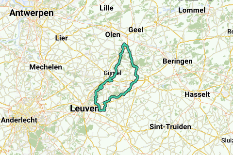 vertrek westerlo Laarberg Langdonken naar langdorp aarschot zijkant den Unikamp naar de moedermeule, verder naar holsbeek chartreuseberg tot aan pellenberg terug via Sint Joris Winge roeselberg Tielt Winge, wijnputstraat Zichem naar averbode en via zammel terug naar Tongerlo