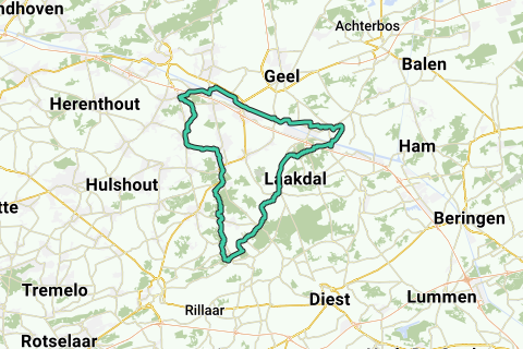 Lus start van Magister Janssenstuin, 8, Turnhout, Antwerpen, 2250, België Routering: Racefiets - mooiste
