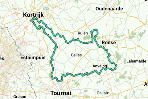 Route via Kanaal Bossuit- Côte de Trieux - Paterberg - Côte de la Croisette - Mont St Aubert - Schelde - Helkijn - Bellegem