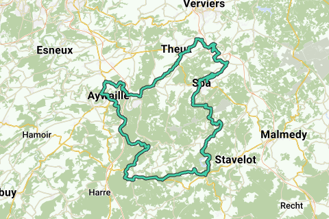 Rondrit van 100 kilometer vanuit Theux via Aywaille, Trois-Ponts en Spa met heel wat hoogtemeters (1940hm). Je fietst volgende hellingen op: Côte de Becco vanuit Spixhe, Hauregard, La Redoute, Hameau de Stoqueu, Côte de Chession, La Levée, Roanne Coo vanuit l'Amblève, Col de Rosier vanuit Ruy, Côte d'Annette et Lubin en Côte de Polleur.
