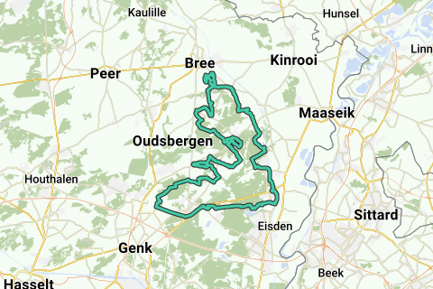 Je bereikt de omgeving van dorp Opoeteren. Hier liggen enkele klimmetjes te wachten, waarvan de Jonkersweg het steilst is (tot 10%). Via vrijliggende fietspaden door het Gruitroderbos, fiets je richting het noordelijk deel van het Kempisch Plateau. Het terrein is licht geaccidenteerd door toedoen van de Itterbeek en door, iets noordelijker, de Eetsevelderbeek. En tot slot zal de Steenberg je op het eind nog even een inspanning laten leveren voordat je Opitter weer bereikt.