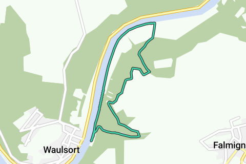 De route start meteen met een mooie klim over het Crétias-pad, een historisch traject dat vroeger door de inwoners van Falmignoul werd gebruikt om naar het station van Waulsort te lopen voor treinreizen naar Dinant.
