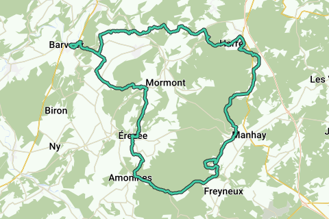 Route met Quad van Barvaux, over Erezee naar Manhay en terug.