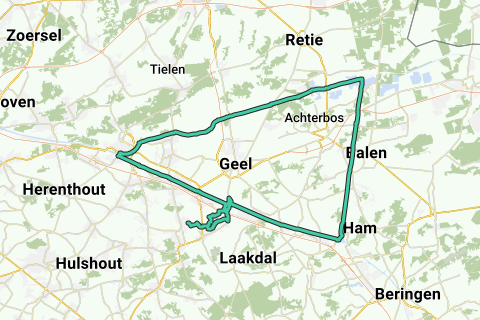 vanuit tongerlo naar het kanaal. in een driehoek van 78 km van het ene kanaal naar het andere om vanuit stelen terug naar Tongerlo te gaan.